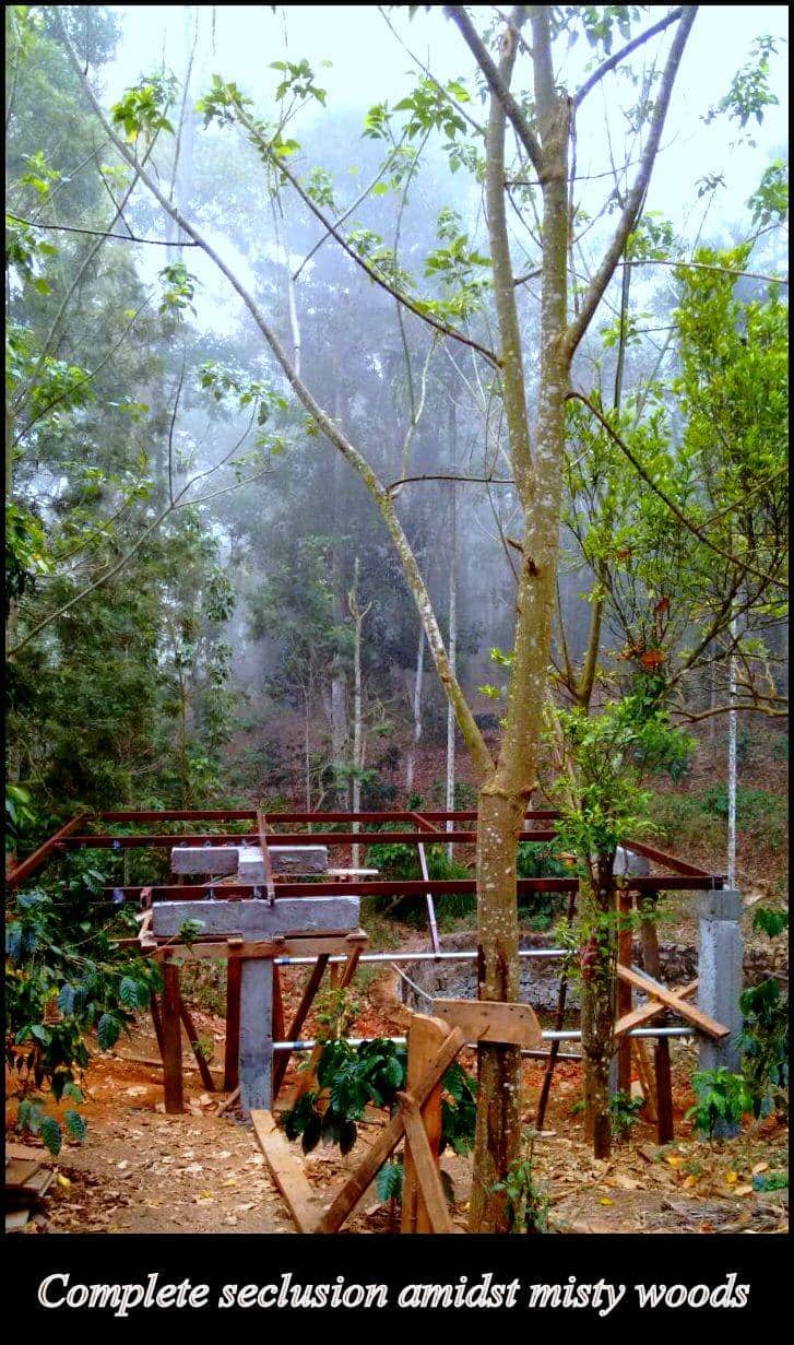 The next step was to decide upon the location. Our estate is fully wooded and hence offering a panoramic view was out of the question. Instead, we decided to capture the sense of living in a dense forest while orienting the cabin. Initially, we selected a spot close to our coffee drying yard as it was easily accessible from our bungalow and the parking areas. I promptly started working on the structural designs for the granary. Then, fortunately my son (in-law) Faaez happened to visit us for a brief visit from Saudi Arabia. We discussed structures, designs and location. That evening, at about 8p.m., Faaez was pensively surveying the proposed area, in order to get a feel of the wilderness in the dark. Suddenly, he was disturbed by the sudden wailing and howling from our neighbors house which was just 15 meters away from our estate borders. The poor child wailed on for about ten minutes. This was immediately followed by thunderous suspenseful music emanating from a loud television set, presumably holding the attention of an entire family watching a block buster Kannada series with rapt attention! This went on for quite some time. Faaez came back to me and reported that we might need to reconsider our decision about the location. We visited the spot again the following few nights and the pattern seemed to be consistent. First the wailing child, and then the never ending suspense music from the Kannada serial. Faaez insisted that our guests should never be disturbed at any cost other than with natural forest sounds and I agreed with him wholeheartedly.