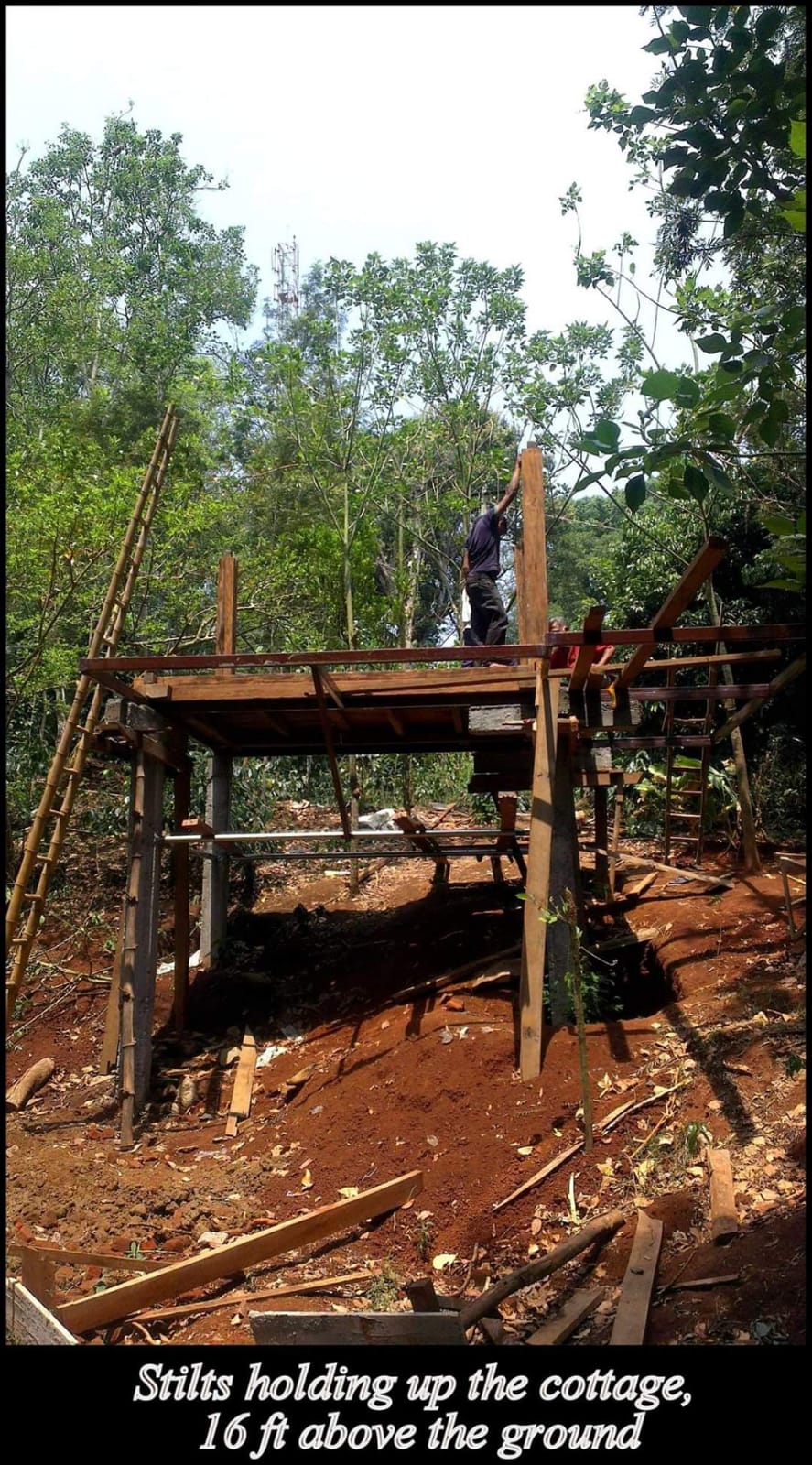 With respect to the design, all of us had fantastic, out of the box versions of the cabin in our minds and most of our time was consumed in wondering about how final look would be. Faaez suggested that we build the structure on stilts and at as much height as possible. Jyothi insisted that we should not compromise on the views, no matter what! I had to strike a tough balance considering structural implications and also the access to the cottage.